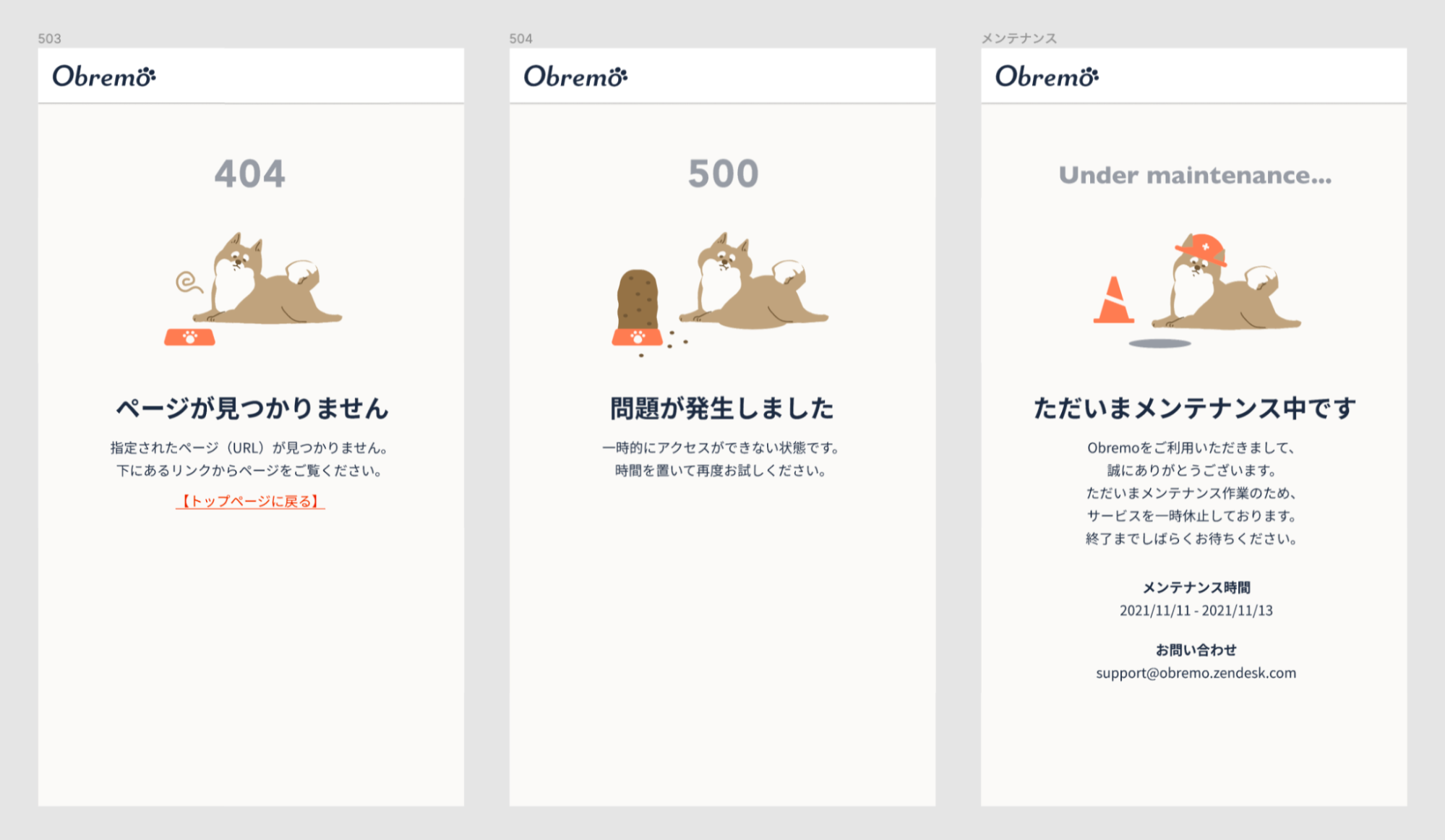 株式会社エイチームコマーステックのペットフードブランド、「OBREMO」で使用されていたエラー画面のデザインについて紹介しているページです。